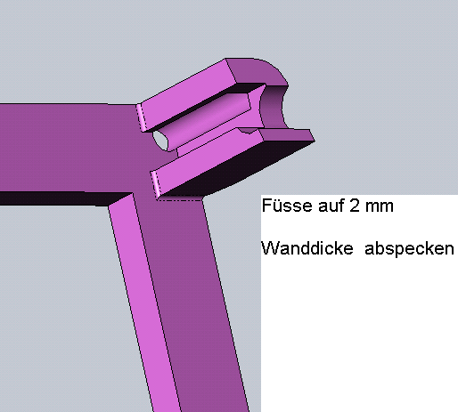 Danke Gerhard. Hallo Magical, wollte ein paar Bilder anhängen, funktioniert aber heute nicht so gut. Also erst mal das Grundsätzliche: Wie öfter Du ein Gehäuse teilst, um so mehr mußt Du verbinden. Also sollten 2 Hälften für den Gehäuse-Griff reichen. Die Verbindungstechnik hängt auch von der Stückzahl ab. Bei kleinen Stückzahlen würde ich Schrauben oder clipsen. Bei großen geht auch schweißen. Einfach clipsen reicht aber meistens nicht, man muß den Schnapphaken zusätzlich verriegeln und das ist dann auch nicht mehr lösbar. Im Spritzguss ist die Wanddicke wichtig. Bei der Größe des Griffs sind die 2,5 mm noch in Ordnung, aber mehr sollten es nicht werden. Bei dem Displalyhalter sind die Bohrungen in den Füssen zwar schon richtig, aber von aussen abspecken wäre besser. Für den Schalter kannst Du einen einfachen Drucktaster einbauen. Die Messingbuchse wäre zwischen den Gehäusehälften gut aufgehoben. Umspritzen ist schon sehr aufwendig. ------------------ Klaus Eine Antwort auf diesen Beitrag verfassen (mit Zitat/Zitat des Beitrags) IP |