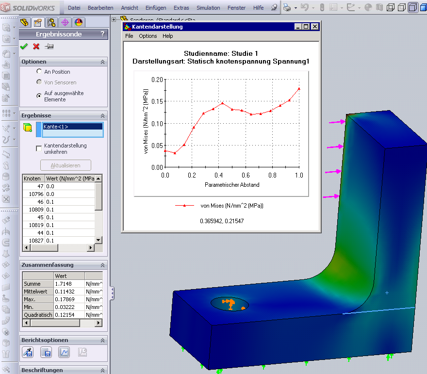 Mit Sondieren kannst Du auch die Ergebnisse auf mehreren Punkten einer Linie anzeigen lassen.