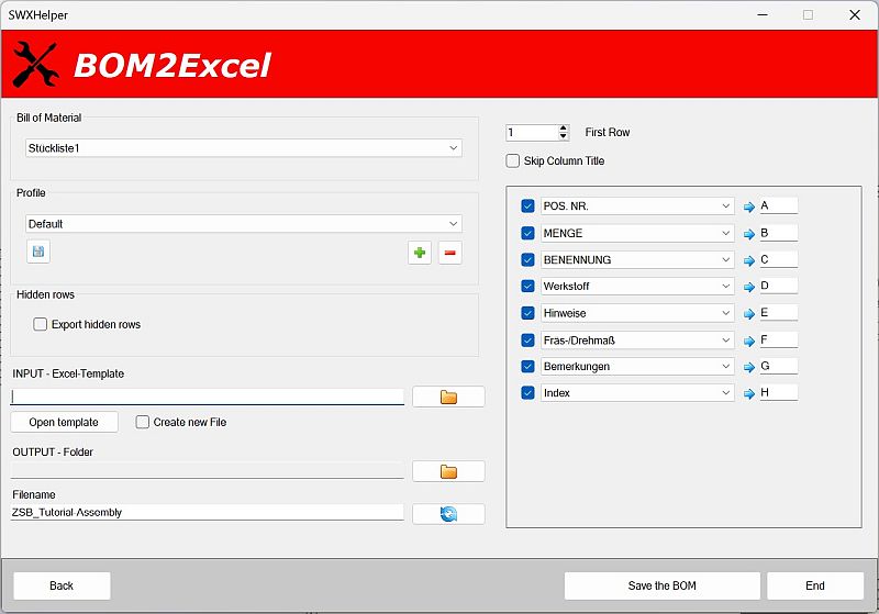 SWXHelper für SOLIDWORKS (Version 1.0.3.7) - RELEASEAuch wenn es etwas auf sich warten ließ, hier das neue Release für euch. BOM2Excel - optimierte Benutzerführung