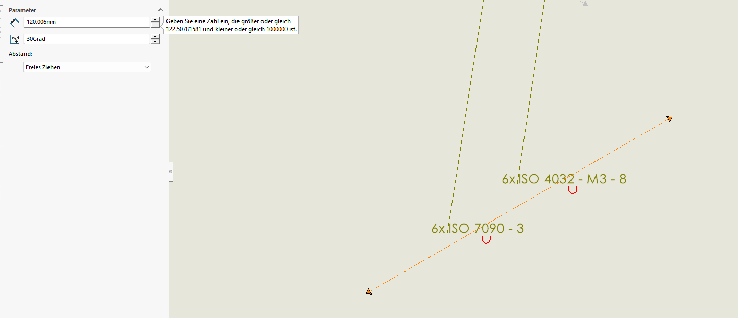 Die Mindestlänge wird bei der Magnetlinie wohl berechnet (sieht man auch schön ohne Mengenangabe, wenn man den Winkel der Linie ändert).