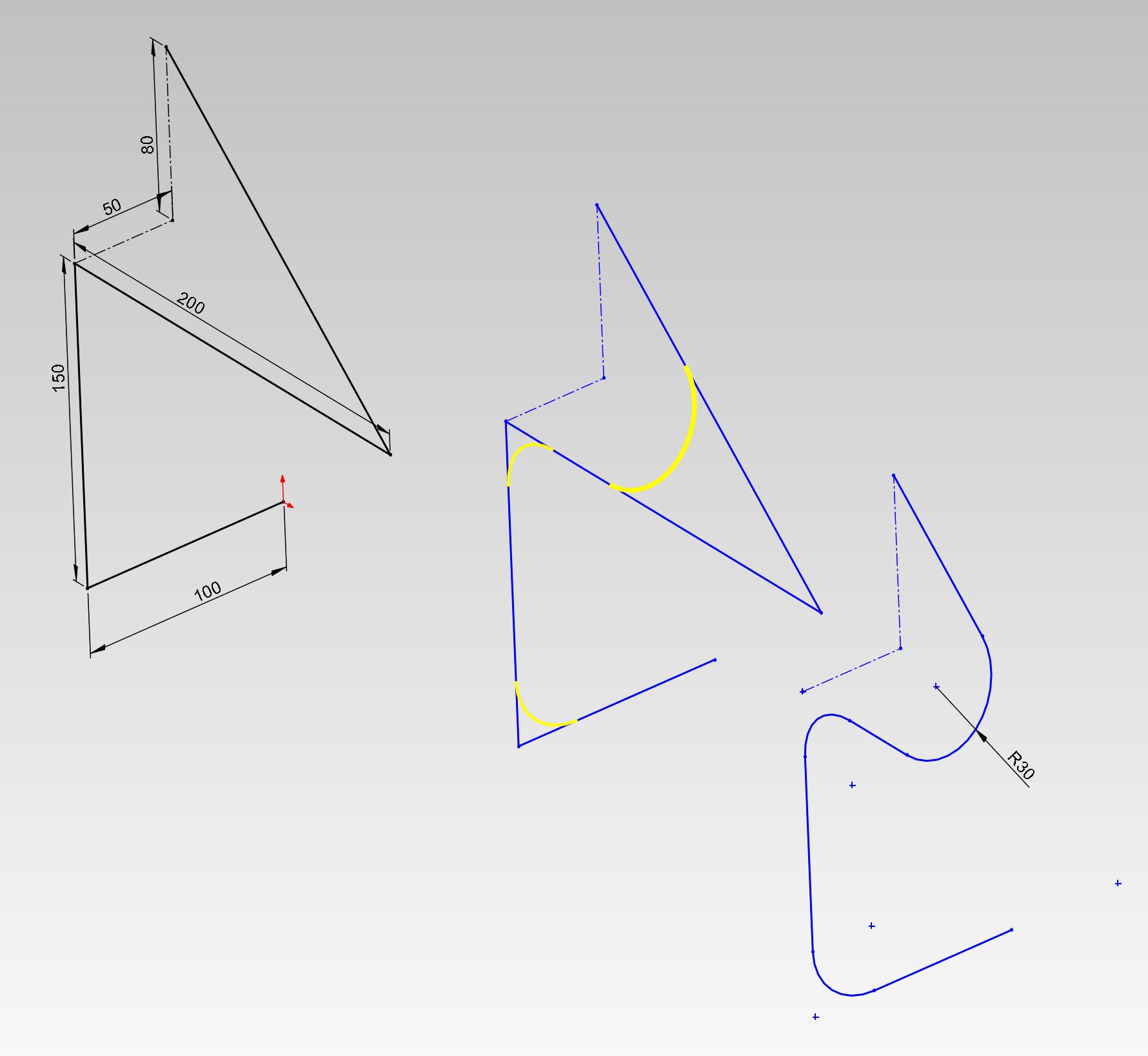 Hallo, ich arbeite an Stelle vom händischen einfügen der Radien mit dem Skizzenwerkzeug "Spline anpassen", einfach alle geraden auswählen und dann unter den Spline-Werkzeugen "Spline anpassen" verwenden, hierzu müssen die geraden auch nicht zwingend in einer Skize sein, ich mach das weil dann hier keine sichtbaren tangentialen Kanten entstehen. Gruß Bernd ------------------ --- Man muß nicht alles wissen, man muß nur wissen wo es steht --- Staatlich anerkannte Deutschniete  Eine Antwort auf diesen Beitrag verfassen (mit Zitat/Zitat des Beitrags) IP |