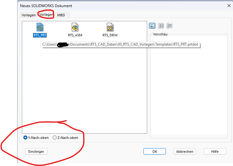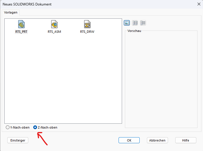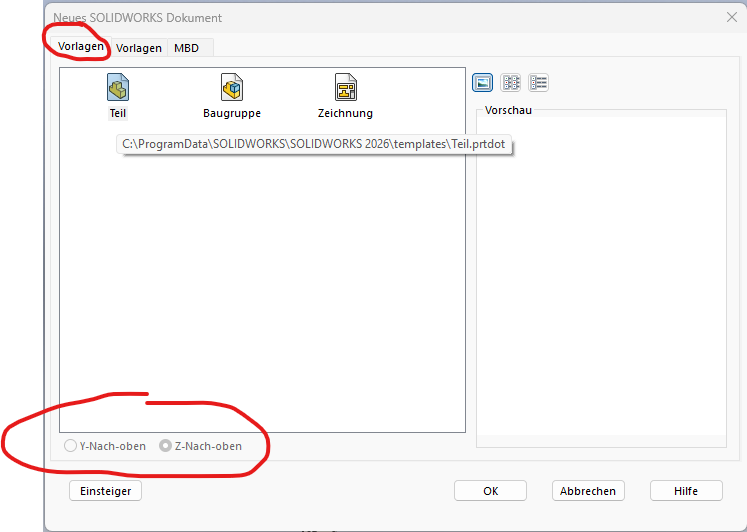 Zitat: Original erstellt von Knoeti:ich habe deinen Vorschlag ausprobiert, leider ohne Erfolg. Mir ist aber etwas aufgefallen, wenn ich die Vorlage (.PRTDOT) öffne, wird die Y-Nach-oben Ausrichtung dargestellt. Erstelle ich aber über NEU ein neues Teil, ist wie im Screenshot zusehen, im Auswahlfenster unten, immer standardmäßig Z-Nach-oben aktiviert.