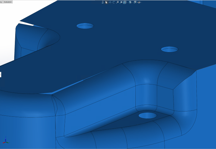 Das Hauptproblem sind Unstimmigkeiten bei der Erstellung der neuen Flächen. Je nach gewählten Radien kann die gegenüberliegende Geometrie nicht sauber berechnet werden. Wenn es bei einem bestimmten Radius gut geht, kann es vor allem bei Vergrößerungen der Wandstärke vorkommen, dass die Außenradien nicht mehr verkleinert auf die Innenseite passen und das wird dann besonders schwierig, wenn es komplizierte Bereiche gibt, in denen viele Flächen mit aufgebrachten Radie zusammenkommen. Deswegen sinnvoll: kleinere Radien immer erst nach der Wandungsoperation modellieren. Viele Grüße Andreas Eine Antwort auf diesen Beitrag verfassen (mit Zitat/Zitat des Beitrags) IP |