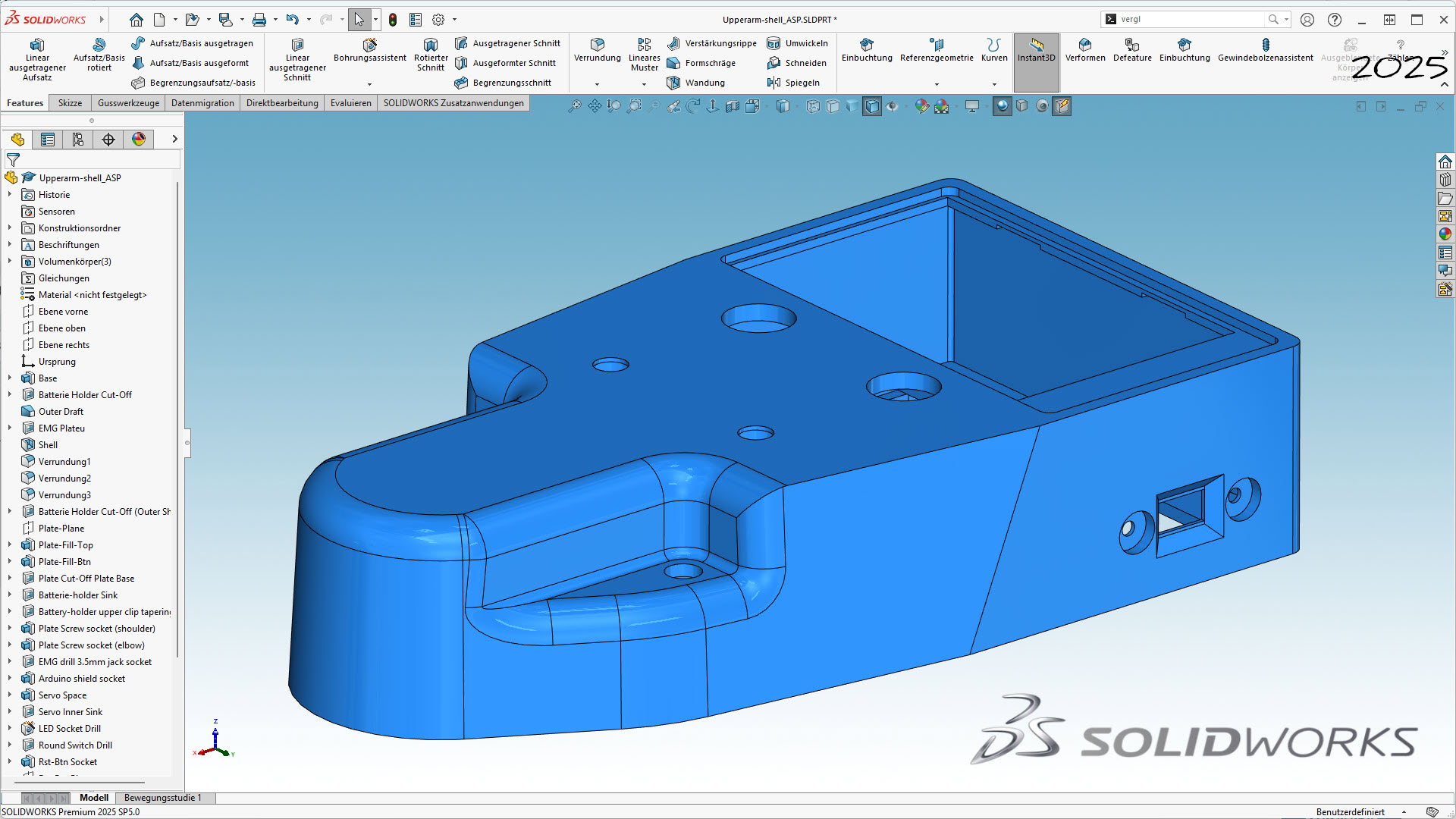 Hi, für eine 3D-Print Gehäuse-Schale habe ich in SolidWorks25 ein Modell designed. Im Nachhinein musste ich feststellen, die die Schalenstärke auf der Oberseite besser 4 mm sei und entsprechend dieses vorgenommen - in der Annahme, dass Solidworks das schon anpassen wird. Das hat es, aber nicht wie ich es erwartet habe, siehe Bild. Auf der Oberseite sind nun Spalte, auch im exportierten STL file. Aber irgendwie bekomme ich es nicht hin, dass es wieder passt - anschließend gibt es Folgefehler, die ich nicht auflösen konnte. Passt SW derartige Änderungen nicht automatisch an, oder habe ich etwas falsch gemacht? Wie bekomme ich es wieder hin? Viele Grüße Olaf [Diese Nachricht wurde von OlxCad am 06. Feb. 2026 editiert.]