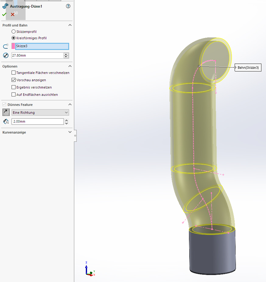 [QUOTE]... Zumindest die Mittellinie in dieser Skizze .../QUOTE] Hallo, Die Mittellinie muss auch eine ganz normale Linie sein, evtl auch in einer eigenen Skizze liegen. für die Konturen (und Leitlinien) gibt es (zumindest bei mir in SWX2021) auch ein Auswahlwerkzeug für geschlossene Kurvenzüge oder offene Kurvenzüge. Bei Auswahl von deinen Leitlinien und der Mittellinie bekomme ich eine etwas merkwürdig aussehende Wanddickenverteilung auf der gegenüberliegenden Seite. kannst du mit SWX2021 Dateien etwas anfangen? Gruß, Christian Eine Antwort auf diesen Beitrag verfassen (mit Zitat/Zitat des Beitrags) IP |