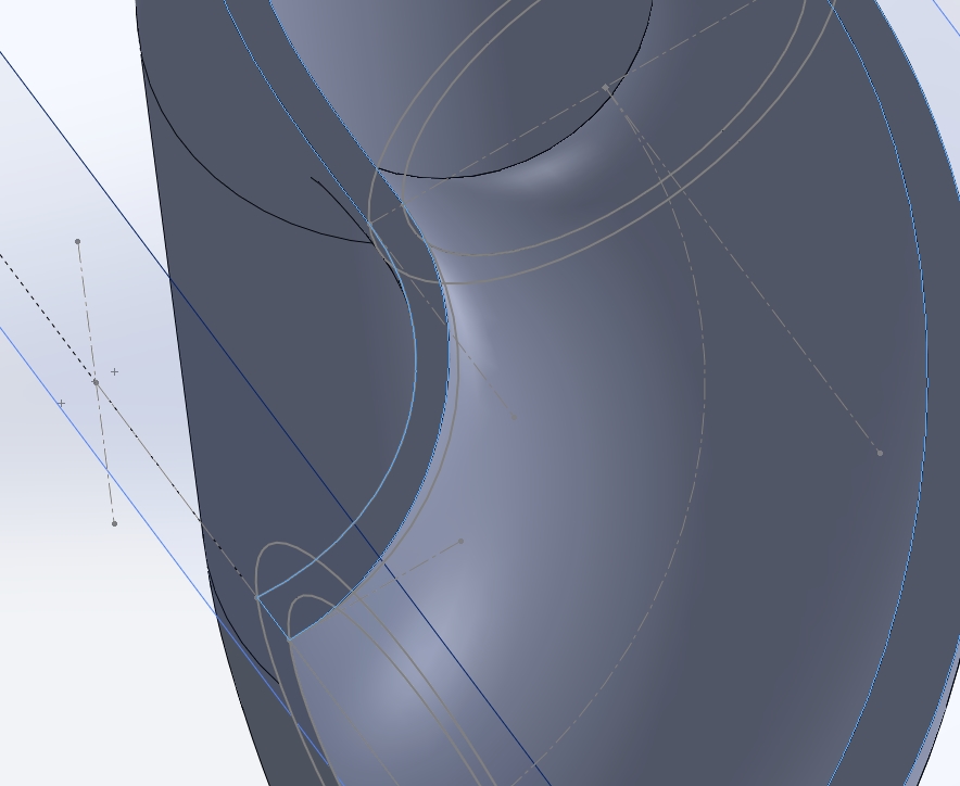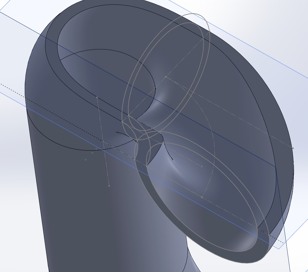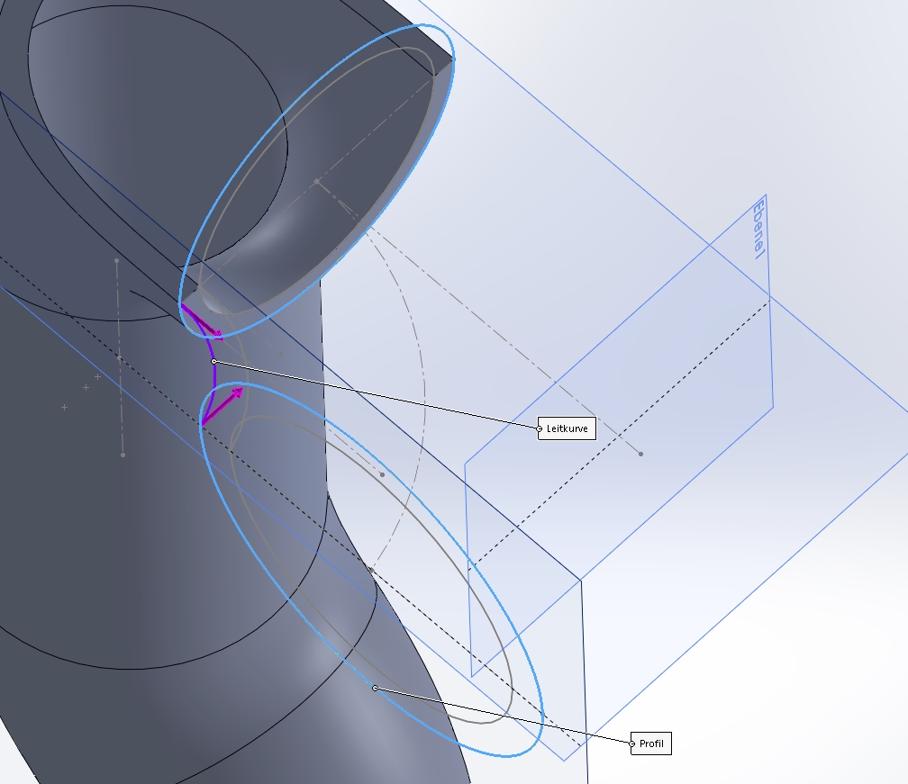 Okay...gelöst. Warum auch immer: beim Ausformen ist es SWX  egal, ob da noch andere Linienelemente in der Skizze sind. Beim "ausgeformten Schnitt" spinnt die Auswahl, ich musste eine neue Skizze 10 erstelle in der nur EIN Radienelement als Leitkurve enthalten ist. Die muss die beiden Kreiselemente auch berühren. In dem Fall hab ich das eine Element aus der anderen SKizze als Kante abgeleitet, somit muss ich nur in einer SKizze arbeiten. *seufz* Eine Antwort auf diesen Beitrag verfassen (mit Zitat/Zitat des Beitrags) IP |