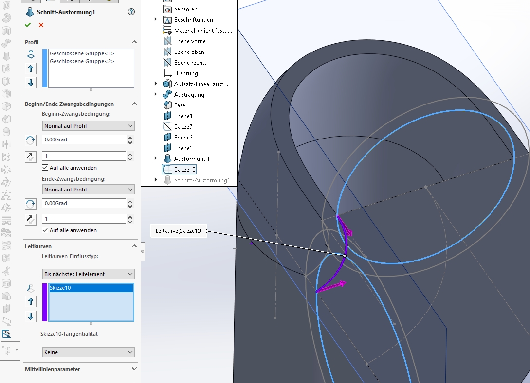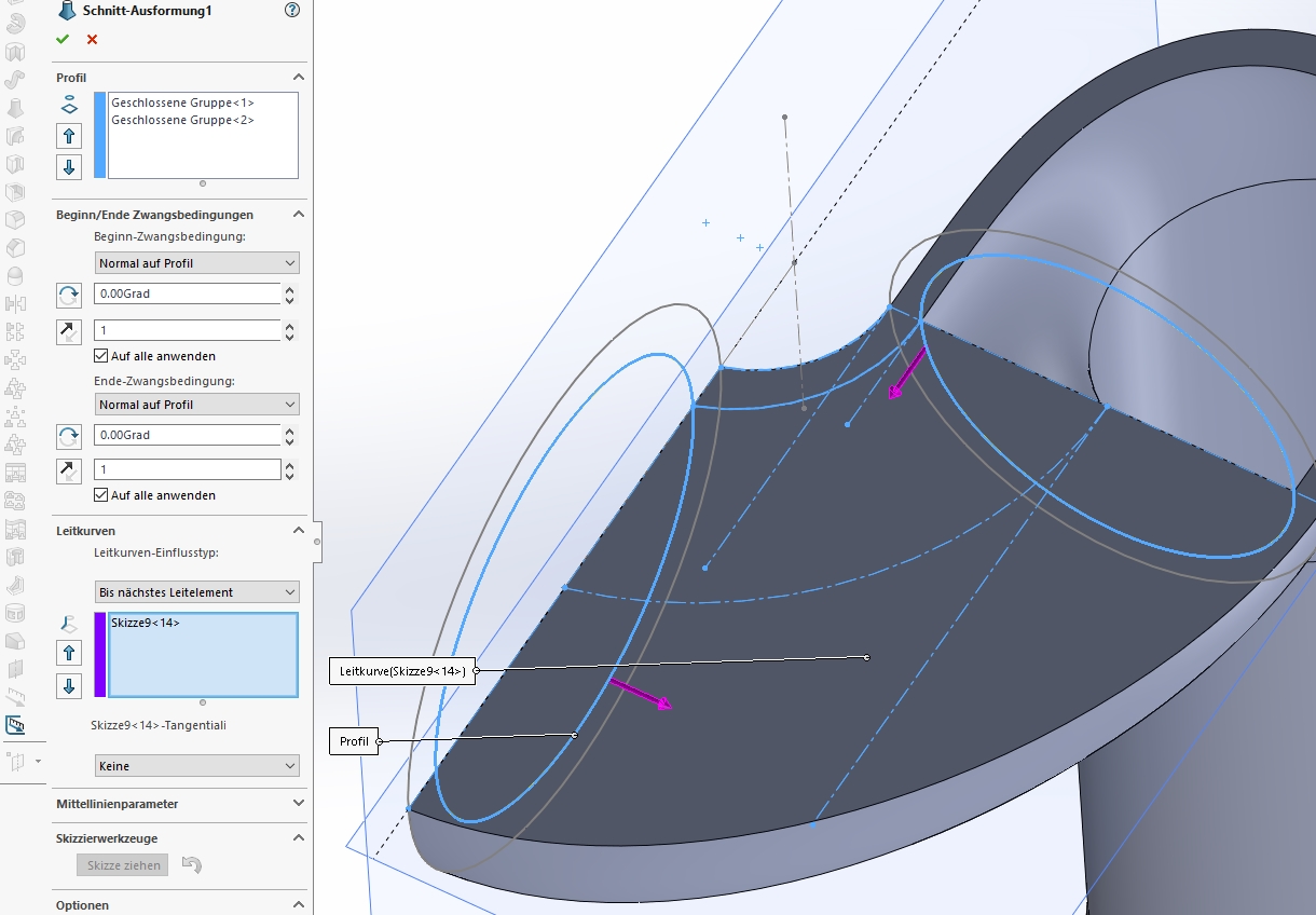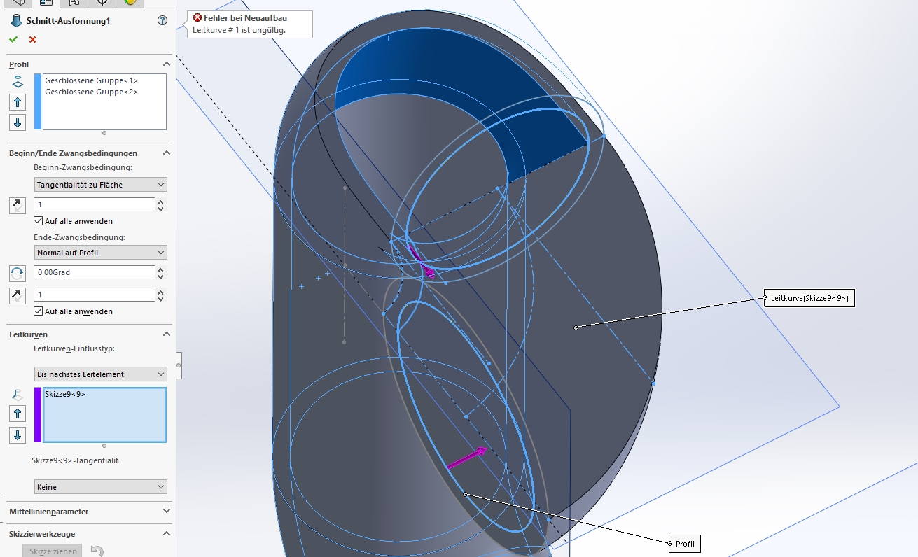 Das hier ist die Skizze mit den zwei Leitkurven und der Mittellinie. Beim Volumen ausformen kann ich die äussere Kurve als Leitkurve anwählen (Meldung: "offene Gruppe 1"), beim Schnitt nicht (Meldung "Skizze 9..."). Egal welche der Radien ich als Leitkurve auswähle. Eine Antwort auf diesen Beitrag verfassen (mit Zitat/Zitat des Beitrags) IP |