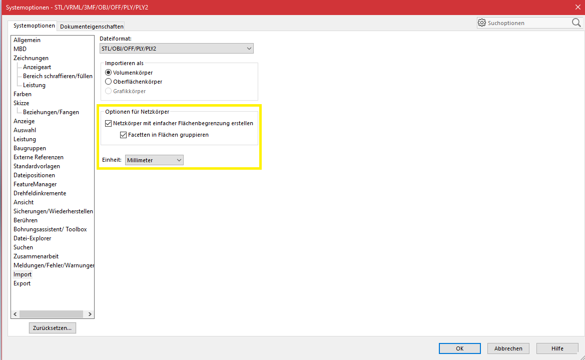 1. Nach dem Import der STL Dateien (ca. 2MB) als Volumenkörper, bekomme ich SWX Dateien die recht groß sind (16MB). Ich gehe davon aus, dass dies von den vielen kleinen Flächen kommt. Wenn ich diese mittels „Fläche löschen“ (Option löschen und ausfüllen) verbinde, wird die Datei nur noch größer. Und der Zeitaufwand ist gigantisch. Kann man das automatisch vereinfachen? Oder wie kann man die Dateigröße reduzieren?
