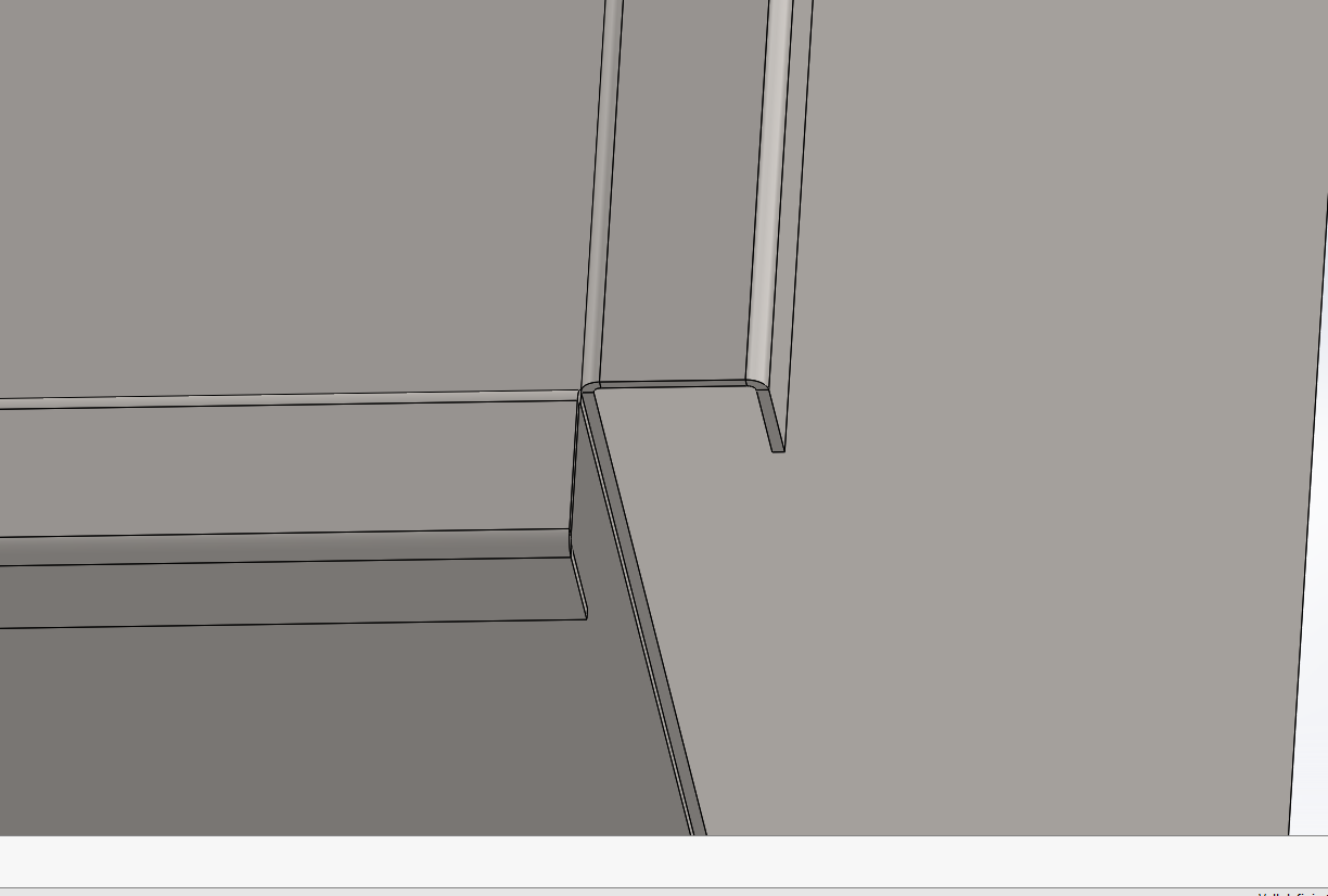 Jetzt würde ich gerne die Bleichteile so anpassen, dass die Ecken der Laschen auch mit 45° Kehrung geschlossen sind. Allerdings finde ich in der Baugruppe selber keine Funktion die dies ermöglicht.