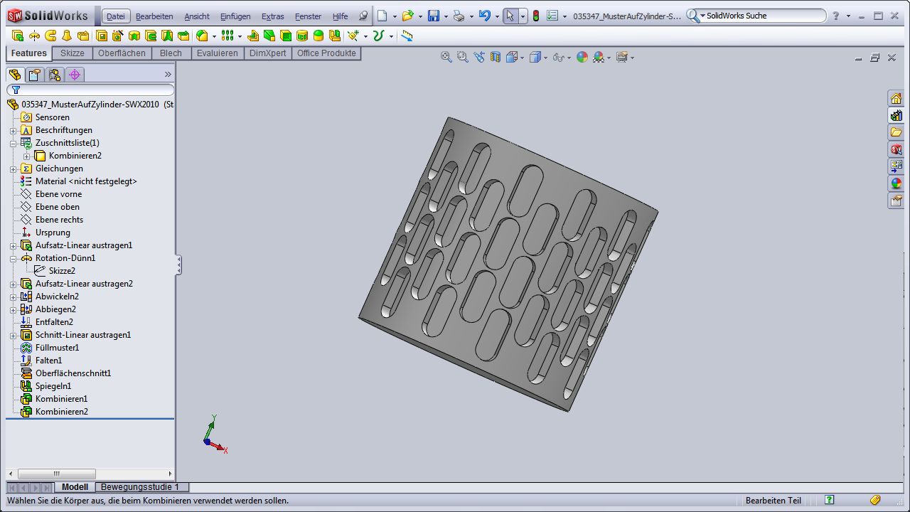 Umwickeln wäre eine weitere Möglichkeit. Dazu das Muster in der Skizze anlegen... Noch eine weiter Möglichkeit: ein Blech mit Füllmuster, wie im Anhang dargestellt... HTH, Ralf ------------------