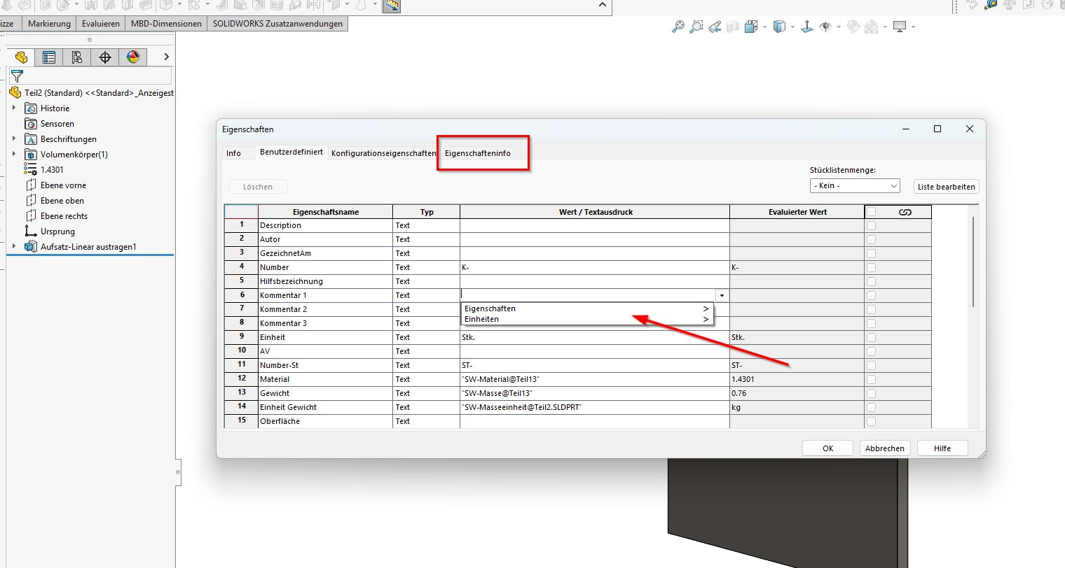 Bei älteren Dateien: im Featuremananager auf dem allerobersten Eintrag mit der rechten Maustaste das PopUp holen und dort ungefähr auf halber Höhe Noch eine Anmerkung: Bitte schreib mal wenigstens deine SWX -Version in deine Systeminfo. Dann kann man häufig besser helfen. ------------------ Grüße aus Dresden Volkmar Grube Es gibt keine Probleme, es gibt nur Aufgaben. [Diese Nachricht wurde von Volkmar Grube am 22. Apr. 2026 editiert.] Eine Antwort auf diesen Beitrag verfassen (mit Zitat/Zitat des Beitrags) IP |