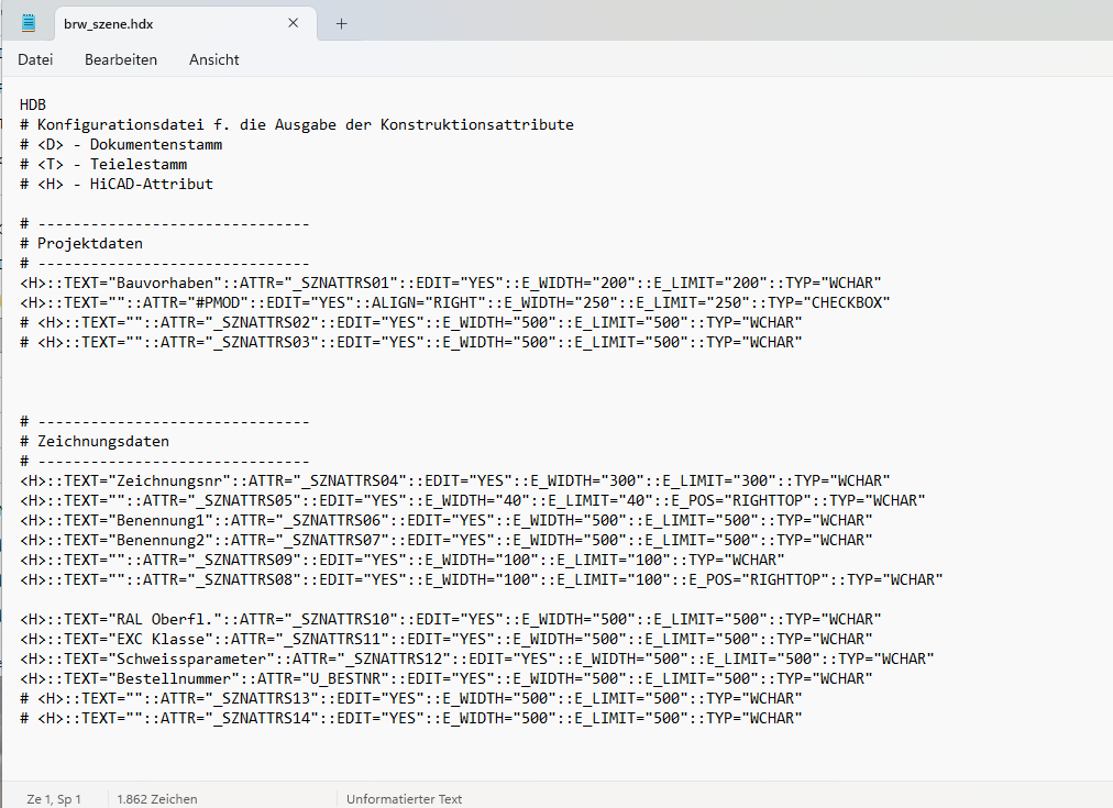 Super, ja, es wären Konstuktionsattribute aus: Die in der SChriFe_ausAttr hinterlegt sind, reichen eigentlicht aus Je nachdem wieviel Aufwand ob das hier möglich ist, oder ob dafür eine Programierung bezahlt werden muss... Gerne aus PM Eine Antwort auf diesen Beitrag verfassen (mit Zitat/Zitat des Beitrags) IP |