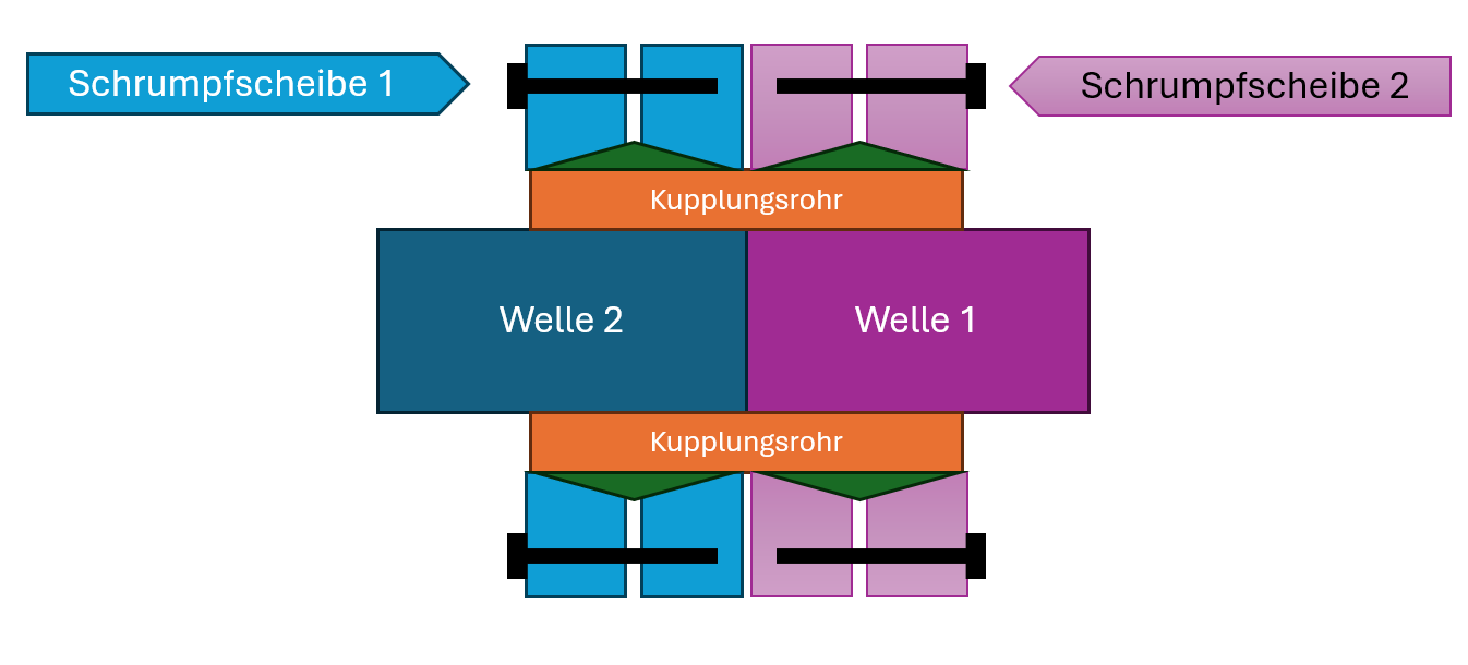 Habe ich das außerdem richtig verstanden, dass die beiden Wellen, die ich verbinden möchte, jeweils etwa zur Hälfte in den Spannsatz eingeschoben werden müssen, also je ca. 20 mm, und dann über die Schrauben geklemmt werden, damit der Spannsatz korrekt montiert ist und das Drehmoment übertragen kann?