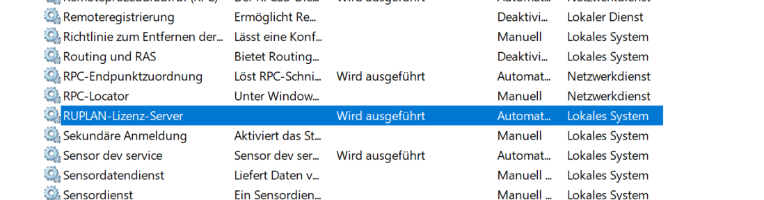 Hallo Aboden, Ich habe eigentlich nichts anderes gemacht, als bei Windows 10. 1. Treiber für den Dongel Installiert. 2. Programm (Ruplan) von CD installiert. 3. Lizenzserver als Admin installiert.Die "Liz_ini" wurde dabei ja von selbst erstellt. 4. meine vorhandene "LIZ_DB" in der Lizenzserver Installation ersetzt (C:\Ruplan471\Liz470Sys\RUP4MAIN) Da dies nicht funktionierte, habe ich die (LIZ_DB) danach noch in den Ordner (C:\Ruplan471\Liz470Sys\Liz471Sys\nt-i386) und als auch dies nicht funktionierte noch in den Ordner (C:\Ruplan471\Conf) kopiert. Vor diesen Schritten, hatte ich den Lizenzserver auch separat Installiert, und die selben Schritte durchgeführt (also nicht im direkten Ruplan Programm Ordner). C:\Ruplan471\Liz470Sys\RUP4MAIN