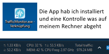 Hi, hab mir den Traffic Monitor geladen und ein Auge darauf um zu sehem wie der Rechner ausgelastet ist -> Das kann mann natürlich auch im Taskmanager sehen. VG ------------------