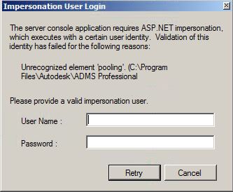 Danach startet die ADMS-Konsole mit dem Dialogfenster "Impersonation User Login" siehe auch Anhang.