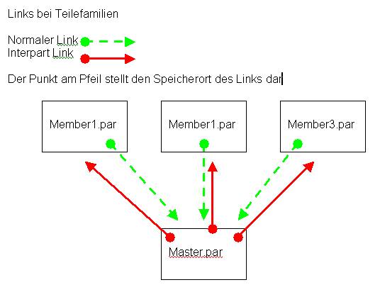 Achtung, Begriffe nicht mischen: Teilefamilien (Endung "par") und Baugruppenfamilien (Endung "asm"). Bei einer Baugruppenfamilie stecken alle Infos in einer Datei, die Memeber werden in der RevManager-API dadurch unterschieden, dass hinter dem Dateinamen nach einem Ausrufezeichen der Name des Members kommt z.B.: Baugruppenfamilie.asm!Member1 Bei Teilefamilien Gibt es einen Master und die einzelnene Members als einzelne Dateien. Die Memebers haben normale Links zum Master, der Master hat zu allen Members einen Interpartlink (siehe Skizze). Meine Empfehlung: Links immer ausschließlich über den revManager auslesen, da der RevManager 1.alle Links einer Datei ausspuckt, ich brauch mich nicht durch Variablentabllen, Familientabellen, Features, usw. hindurch arbeiten und eine Vielzahl von Fallunterscheidungen aufbauen. 2.auch wenn neue Funktionen in zukünftigen Versionen von SE eingebaut werden, die hier entstehenden Interpartlinks, mit den bekannten API -Funktionen auflsiten wird. Zumindest gehe ich davon aus dass hier die Wahrscheinlichkeit, dass ich ohne Programmanpassung auskomme um ein Vielfaches höher ist. Jürgen ------------------ Es gibt keine dummen Anwender, die Fehler machen, es gibt nur schlechte Software, die Anwenderfehler zulässt [Diese Nachricht wurde von Jürgen Niesner am 16. Juli 2003 editiert.] Eine Antwort auf diesen Beitrag verfassen (mit Zitat/Zitat des Beitrags) IP |