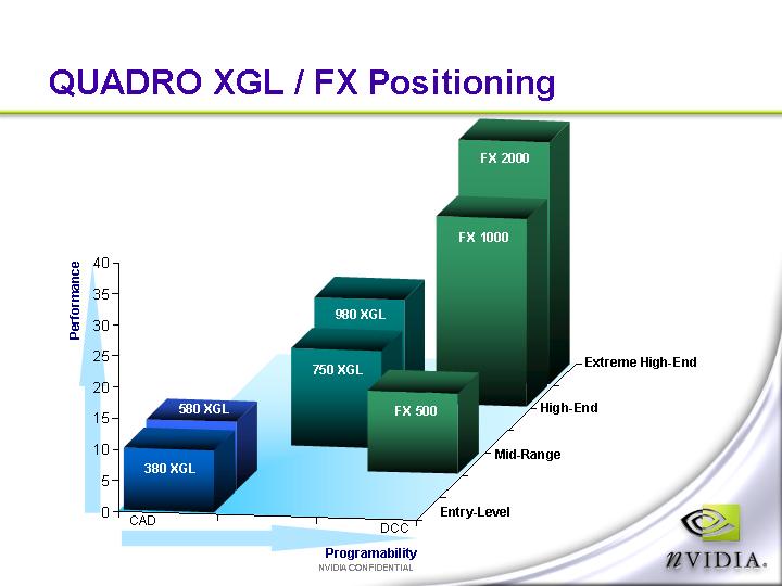 Unsicher bin ich nun bei der Wahl der Grafikkarte. Zur Auswahl stehen Quadro4 750XGL und Quadro FX500. Verwirrend find ich das die 750XGL als Mid-Range Karte bezeichnet wird, aber wesentlich mehr kostet als die sogenannte High-End Karte FX500.
