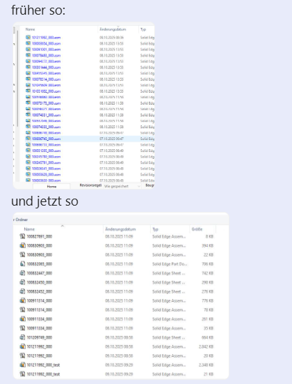 bei der Nutzung von Solid Edge 2025 unter Windows 11 ist mir aufgefallen, dass die Liste der zu öffnenden Dateien deutlich mehr Whitespace (leeren Raum) enthält als in früheren Versionen. Dadurch werden weniger Dateien gleichzeitig angezeigt, was für mich die Übersichtlichkeit erheblich einschränkt.