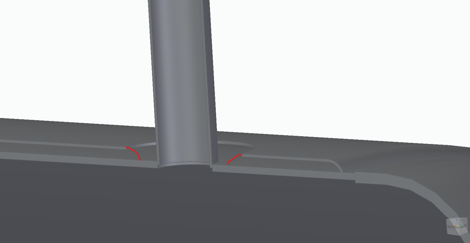 Ich kann also nicht einfach ein Teil erstellen und um den Stutzen rum legen. Dann ist das Teil grade und hat keinen Radius. Würde es einfach ein Konus als Kragen sein könnte ich den mit Rotation zurecht schneiden. Ich habe aber das Problem, dass ich eine Rundung brauche.