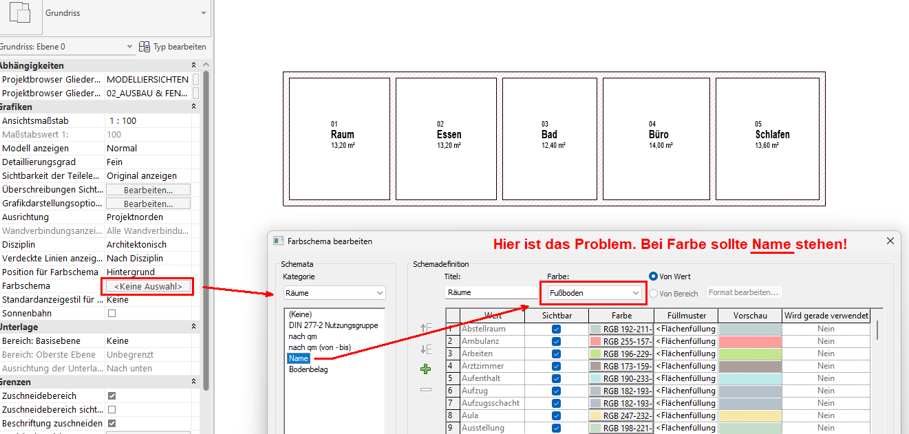 Bei den Eigenschaften von Räumen erscheinen im Listenfeld Fußboden (ID-Daten) nicht wie gewohnt 'Estrich, Fliesen, Parkett' usw. sondern die vorgegebenen Raumbezeichnungen wie 'Abstellraum, Ambulanz, Arbeiten...' und dazwischen dann auch Estrich, Fliesen...