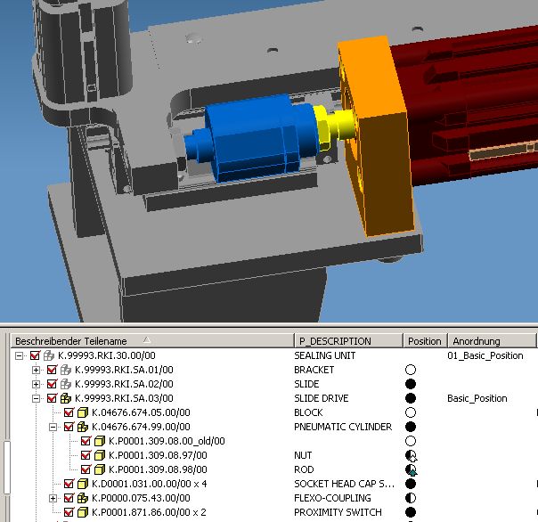 In diesem Fall kann der Konstrukteur die Bewegung des P-Zylinders (=BG) nur dauerhaft beeinflussen, indem er die VCP einsetzt, da er ein Kaufteil nicht überspeichern darf.