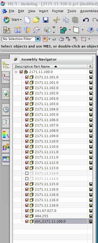 Ich habe versucht, das in NX5.0.3.2 zu reproduzieren (wir haben keine WAVE Lizenz, der ugslmd meldet das auch im Logfile ...). (NX3 Produktivsystem, NX5 Testsystem mit NX3 Backupdaten) Ich kann das geschilderte Verhalten aber nicht nachvollziehen. Die Links sind in NX3 wie auch NX5 alle alive (Linked Faces, Bodies, MirrorBodies, Curves - nur LinkedSketch hab ich keinen dabei gehabt) ... Weder an den NX3 Daten noch in weiterer Folge wenn sie einmal mit NX5 gespeichert wurden und erneut geöffnet werden. EDIT: Im Anhang ist der ANT dargestellt: CTRL_* enthält Definitionsgeometrie, die Einzelteile enthalten (position dependend) WAVE Links die bei dp=TopAssembly erzeugt wurden. Auch wenn nur das Einzelteil geladen wird: Zuerst ist der Link wie er ist - Parent unloaded Wenn man den CTRL_Part nachlädt, wird die Referenz wieder gefunden (Unabhängig ob auch das PositionPart geladen ist) Habt ihr mehr Details ? Thomas Eine Antwort auf diesen Beitrag verfassen (mit Zitat/Zitat des Beitrags) IP |