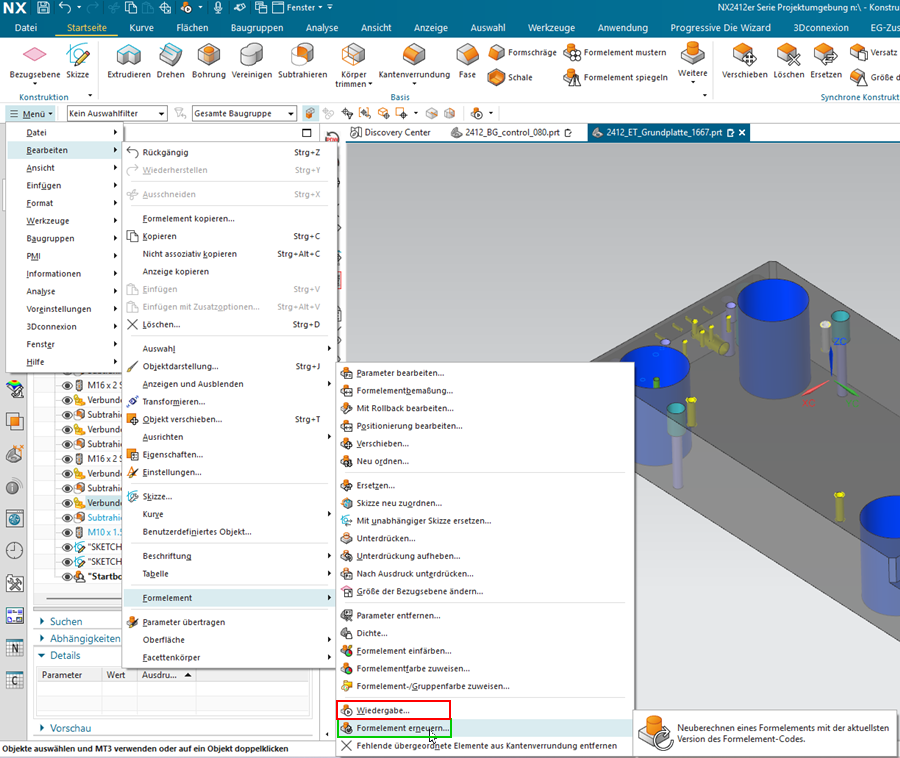 Morgen soviel ich weiss gibt es das refile-tool nach wie vor und es wird auch laut Siemens immer noch benötigt ;-) auch wenn es da eine Info gegeben hat, es wird nicht mehr benötigt.... Du musst die Daten Refilen, sonst bekommen die Daten die news nicht mit .... z.b. wegen Geschwindigkeitsverbesserung die Siemens in jeder neuen NX Version propagiert. Edite: Why do you refile? There are some reasons for re-filing: Improved new version performance NX does not need to convert every part on load The possibility to generate new database objects for all datasets NX does not need to generate it during save Easily applied to released objects The structures in NX and Teamcenter are synchronized Loaded parts will not be marked as modified Drawings are updated Refile heightens database quality because of problem part identification during process execution hier der Link: https://support.sw.siemens.com/de-DE/product/209349590/knowledge-base/PL8611044 lg