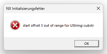 Du kannst ja einfach mal die lokale Festplatte nach *.dpv durchsuchen und dann die Datei umbenennen. Dann ein neuer NX Startversuch.