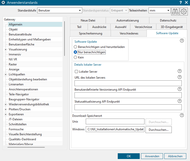 Wo bitte hast du den lokalen Server angekreuzt? In den Anwenderstandards, aber auf welcher Ebene?