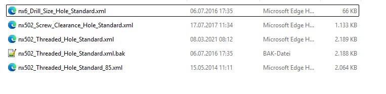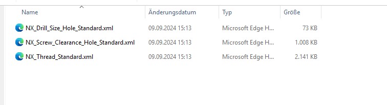 Dann waren die XML-Files definitiv noch älter als NX 1926. In NX 1926 hießen die Dinger schon "NX_*" und nicht mehr "nx6_*" oder "nx502_*". PS: Wenn du jetzt die XML-Files aus der NX-Installation genommen hast, dann hast du deine kundenspezifischen Gewinde, Bohrungen, etc. aktuell nicht mehr verfügbar. Die müsstest du in die XML-Tabellen dann noch einbauen. ------------------ Gruß  Markus Eine Antwort auf diesen Beitrag verfassen (mit Zitat/Zitat des Beitrags) IP |