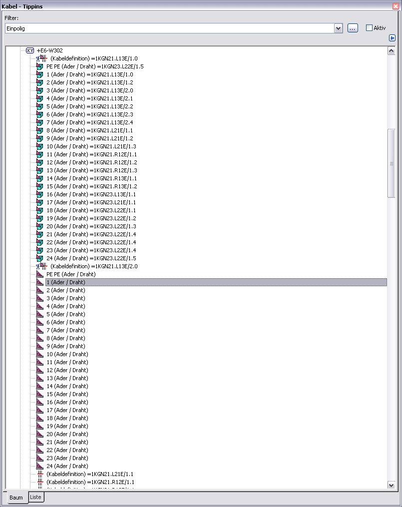 Naja, hab ja noch viel Urlaub dieses Jahr  , Aber leider hat das mein Problem nur bei diesem Kabel wirklich gelöst. Habe hier noch einige bei denen nur eine Kabeldefinition mit der Hauptfunktion versehen ist. Hier eines der Beispiele: Dort bekommt auch die Ader 2 irgendwo noch einen Potenzialtyp PE her - weiß nur nicht wo.... Ader 3,4,5,6 sind doppelt einmal mit Funktionsdefinition einmal ohne. [Diese Nachricht wurde von Bjoern B. am 29. Jul. 2008 editiert.] Eine Antwort auf diesen Beitrag verfassen (mit Zitat/Zitat des Beitrags) IP |