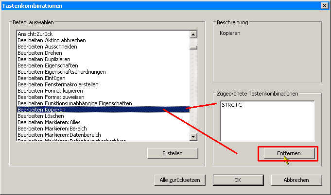 ![]() Liste für Tastenkürzel