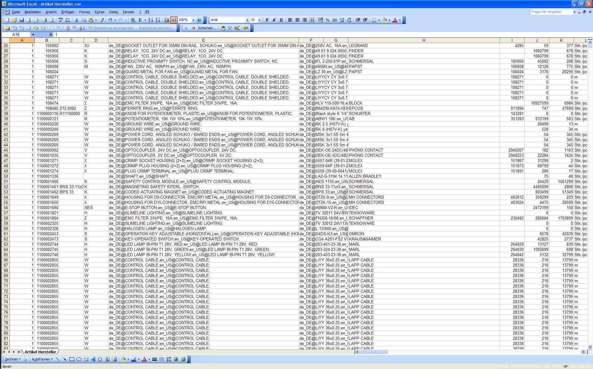 Moin, ich hoffe mal wieder auf eure Hilfe. Wenn ich meine Artikeldatenbank in eine Exeltabelle exportiere dann tauchen da etliche Artikel mehrfach auf!! Ich nutze für den Export die CSV für Artikel (csvimportexport.cfg)und gehe mal davon aus das es ein Einstellungproblem ist?? Hat jemand ein Idee oder eine Lösung wie ich in der Exeltabelle jeden Artikel nur einmal angezeigt bekomme und wie ich auch den Hersteller und den Lieferanten hinein bekomme?? Im Moment steht da nur der Hersteller drin. Danke und Grüsse