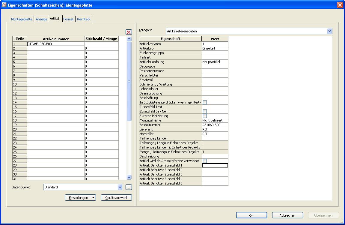 Ich habs auf die Schnelle mit dem oben genannten Beispiel <20901 1> Zusatzfeld [1] nachgestellt und dort "Tür 1 / Tür 10 / Tür 3 etc.." eingetragen. Funktioniert einwandfrei. Edit: In der Artikelstückliste würde auch z.B. <20024> Montageort (beschreibend) als Eigenschaft gehen, dann musst du dein Formular nicht als Betriebsmittelliste neu erstellen. ------------------ Grüsse Backi  Was ist Elektrizität? Morgens mit Spannung aufstehen, mit Widerstand zur Arbeit gehen, den ganzen Tag gegen den Strom schwimmen, abends geladen nach Hause kommen, an die Dose fassen und eine gewischt kriegen. Das ist Elektrizität! [Diese Nachricht wurde von bbe-bac am 20. Mai. 2011 editiert.] Eine Antwort auf diesen Beitrag verfassen (mit Zitat/Zitat des Beitrags) IP |