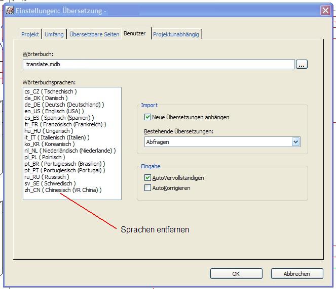 Hallo, das geht über Dienstprogramme - Übersetzungen - Wörterbuch bearbeiten. Da kannst Du nicht benötigte Sprachen löschen, wenn Du diese wirklich nie mehr benutzen möchtest. Vlt. sicherst Du das Wörterbuch vorher mal, falls sich das irgendwann mal ändert ------------------ Gruss Susi *** wer Rechtschreibfehler findet darf sie behalten *** Susi`s Bikertreff Eine Antwort auf diesen Beitrag verfassen (mit Zitat/Zitat des Beitrags) IP |