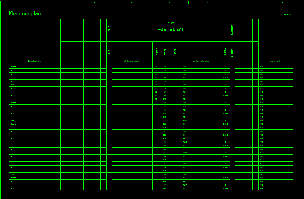 Hallo Zusammen, Ich habe als Anhang meinen generierten Klemmenplan der Klemmenleiste X01 hochgeladen .Auf Seite 2 sieht man, dass die Klemme X01:22 in der ersten Zeile steht. Auf Seite 3 wird die Klemme X01:22 ein zweites mal generiert. Weis jemand , warum bei mir die Seite 2 erzeugt wird und wie ich das Problem beheben kann? Vielen Dank für Antworten ------------------ Ich Liebe es wenn ein Plan funktioniert Eine Antwort auf diesen Beitrag verfassen (mit Zitat/Zitat des Beitrags) IP |