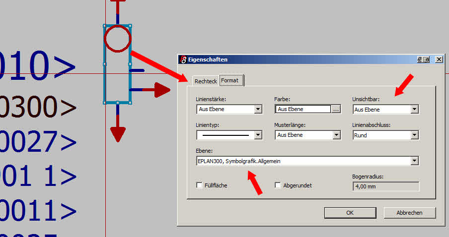 die Ebene ist sichtbar..., leider Ändere ich die Linienfarbe, dann wird es beim rreinziehen in das Projekt so übernommen. Also das falsche Rechteck wird dann andersfarbig dargestellt. Eines fällt noch auf: Die Ein- und Ausgänge haben relativ zum Einfügepunkt feste Positionen. Das Reckteck kann ich aber beliebig weit aufziehen und dann erscheint das Rechteck mit Diagonale. Mir scheint, dass das ganze Symbol gar keine relativen Größen speichert, kann das sein? Danke schon einmal zwischendurch für die Hinweise ------------------ Danke und Grüße TS Eine Antwort auf diesen Beitrag verfassen (mit Zitat/Zitat des Beitrags) IP |