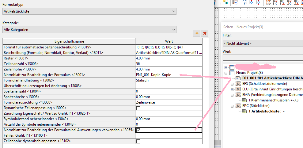 Zitat: Original erstellt von Juke: Hallo, du kannst in den Eigenschaften des Formulars der Stückliste festlegen welches Normblatt verwendet werden soll.Wenn du im Formular kein Normblatt einstellst wird das Normblatt des Schaltplan es verwendet.