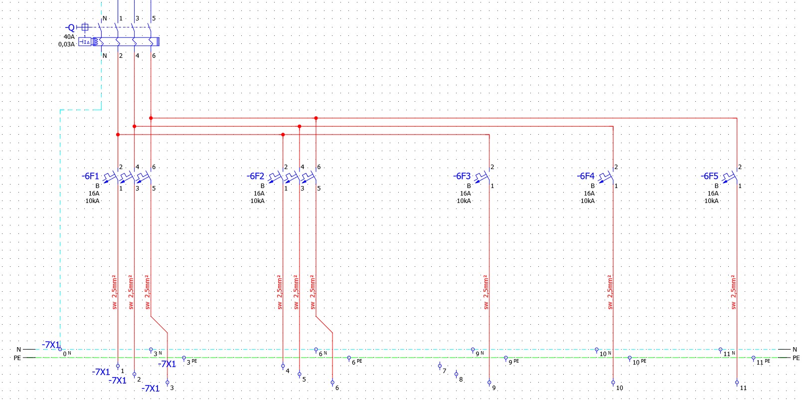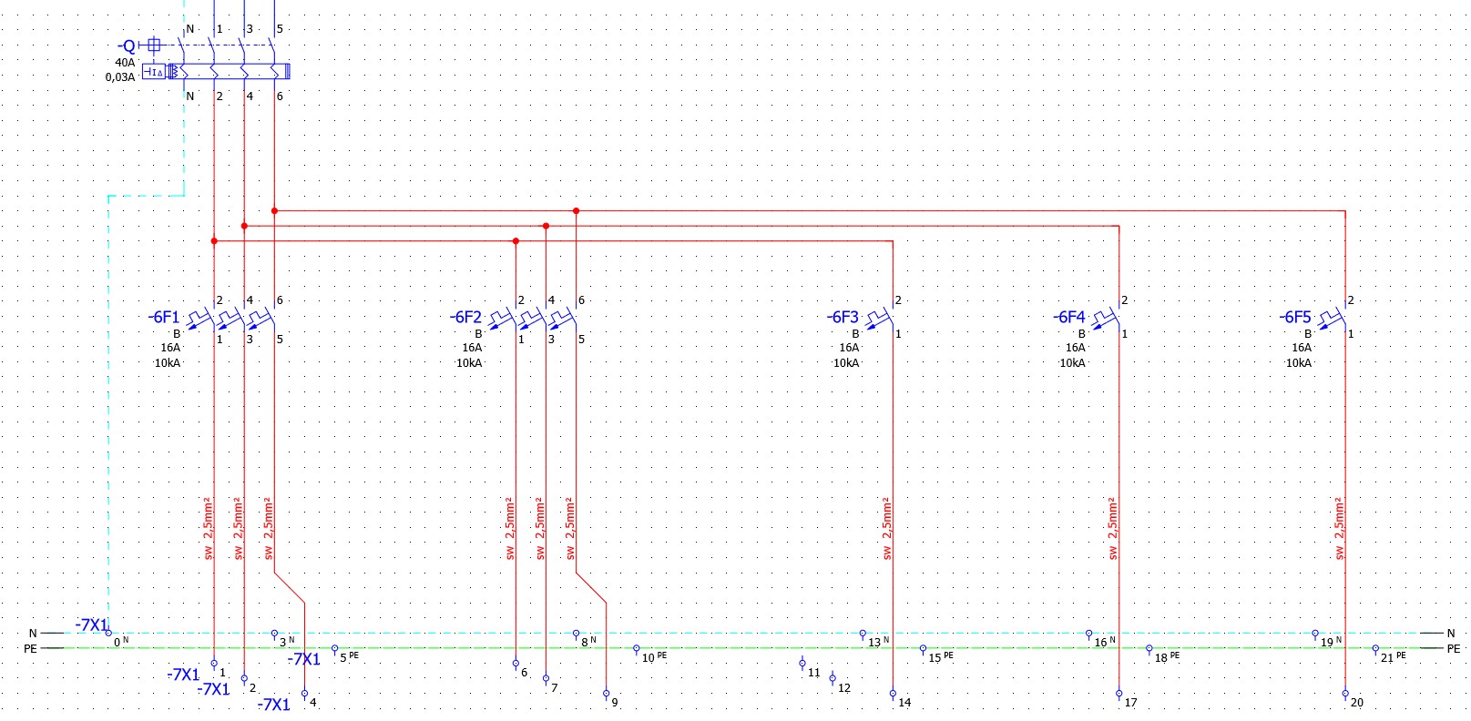 N-Klemme mit Steg, 2 Anschlüsse Etage 3
