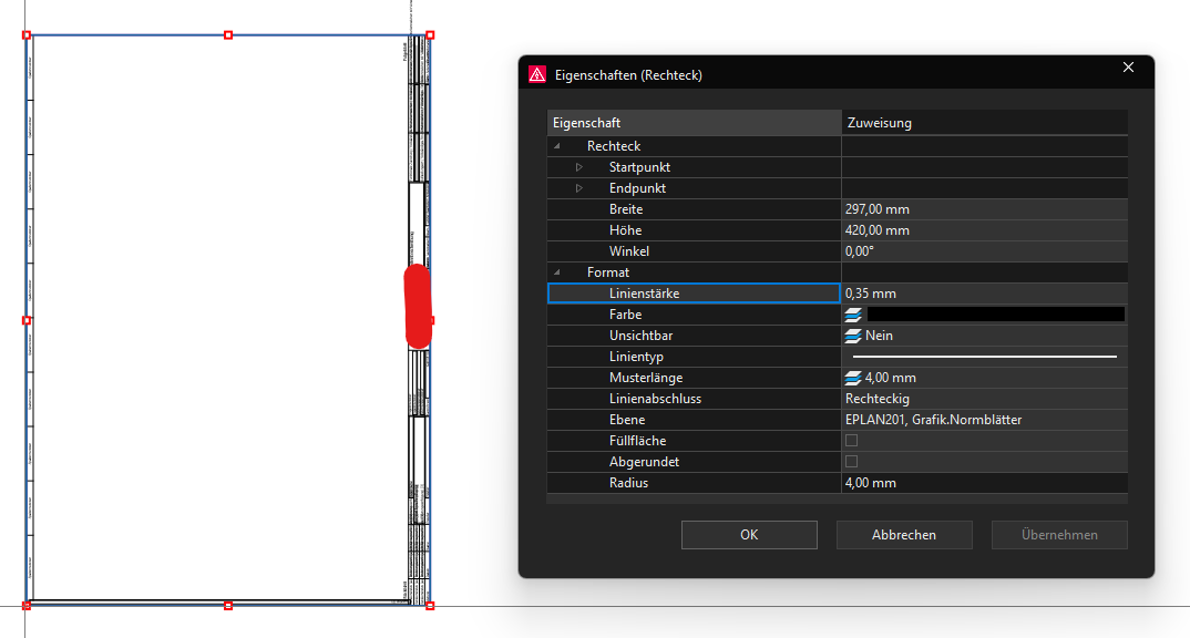 Nun würde ich gerne die Schrankansicht in Hochformat Zeichnen. In den Seiten Eigenschaften habe ich A3 Hochformat als Formular eingestellt. In Eplan wird mir auch alles korrekt angezeigt. Wenn ich nun über Exportieren -> PDF die PDF Ausgebe ist die Seite leider abgeschnitten. Gibt es hierfür eine Lösung ? oder ist eine Ausgabe in Quer/Hoch gar nicht möglich ? Vielen Dank Eine Antwort auf diesen Beitrag verfassen (mit Zitat/Zitat des Beitrags) IP |