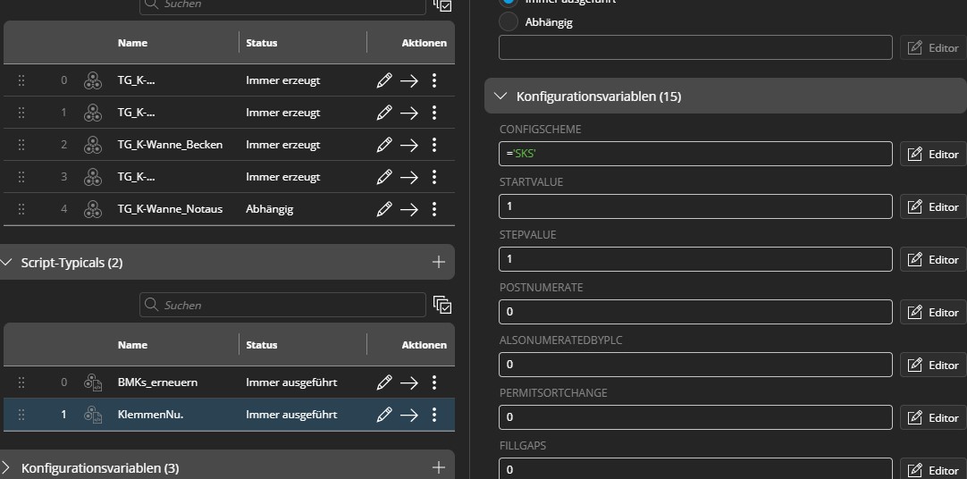Leider bekomme ich mein eigenes Schema für die Nummerierung der BMKs bzw. das Standardschema für die Klemmen dem Skript nicht übergeben.