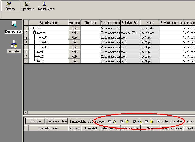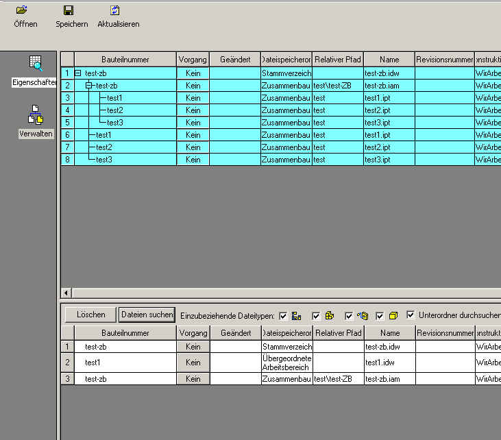 Hallo Dieter, ich habe hier ein kleines Beispiel wie Du Daten kopieren bzw umbenennen kannst. Zum Beispiel: Von einer existierenden Baugruppe TEST-ZB soll eine neue Variante erstellt werden! Die Baugruppe hat folgende Komponenten: TEST-ZB.IAM (Baugruppe) TEST-ZB.IDW (Zeichnungsableitung) Test1.IPT (Einzelteil) Test1.IDW (Zeichnungsableitung) Test2.IPT (Einzelteil) Test3.IPT (Einzelteil) Im Explorer wird die TEST-ZB.IDW markiert und mittels rechter Maustaste der Design Assistent aufgerufen. Es erscheint das anhängende Bild (inet-forum-design-1.jpg). Einen Doppelklick auf die Erste Zeile unterhalb Bauteilenummer markiert den gesamten Inhalt. Nun in der unteren Statuszeile, auf der Grafik (rot markiert) die Hacken setzen. Und anschließend auf Dateien suchen gehen. Das hat zum Ergebnis, wie auf der anderen Grafik (inet-forum-design-2.jpg)zu sehen ist, dass 3 neue Teile in der Auswahl sind! Nun sind alle Teile der Baugruppe (auch die Zeichnungsableitung von Test1) ausgewählt und können kopiert und umbenannt werden! Viel Spass beim Versuchen (lauffester Inventor vorausgesetzt ) Gruß Maze