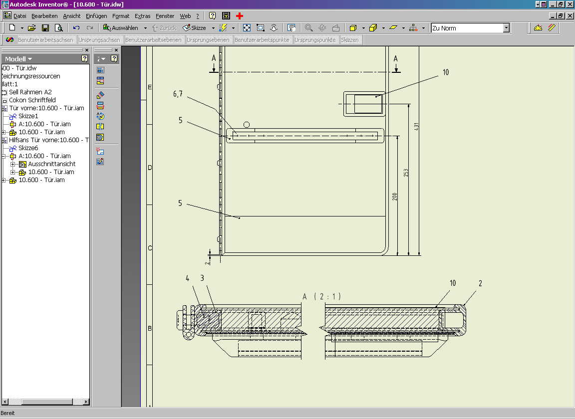 Hi D13t3r! Wenn Du von einer Ansicht, in der es eine Ausschnittansicht gibt, eine weitere Ansicht ableitest, wird das "Aufbrechen" mit vererbt. Wenn Du zuerst die weiteren Ansichten ableitest, und dann in der Mutter die Ausschnittansicht erstellst, wird an den Töchtern nichts vermurkst. Bei den parallelen Ansichten/Schnitten etc. wird nur der Zustand der Erstansicht bei der Erstellung mit vererbt. Nachträgliche Zusätze schlagen nicht mehr durch. Bei der unterbrochene Ansicht ist das nicht so, aber das kennst Du ja selbst. lg und Prost ------------------ lg Tom mcds Datensystem GmbH