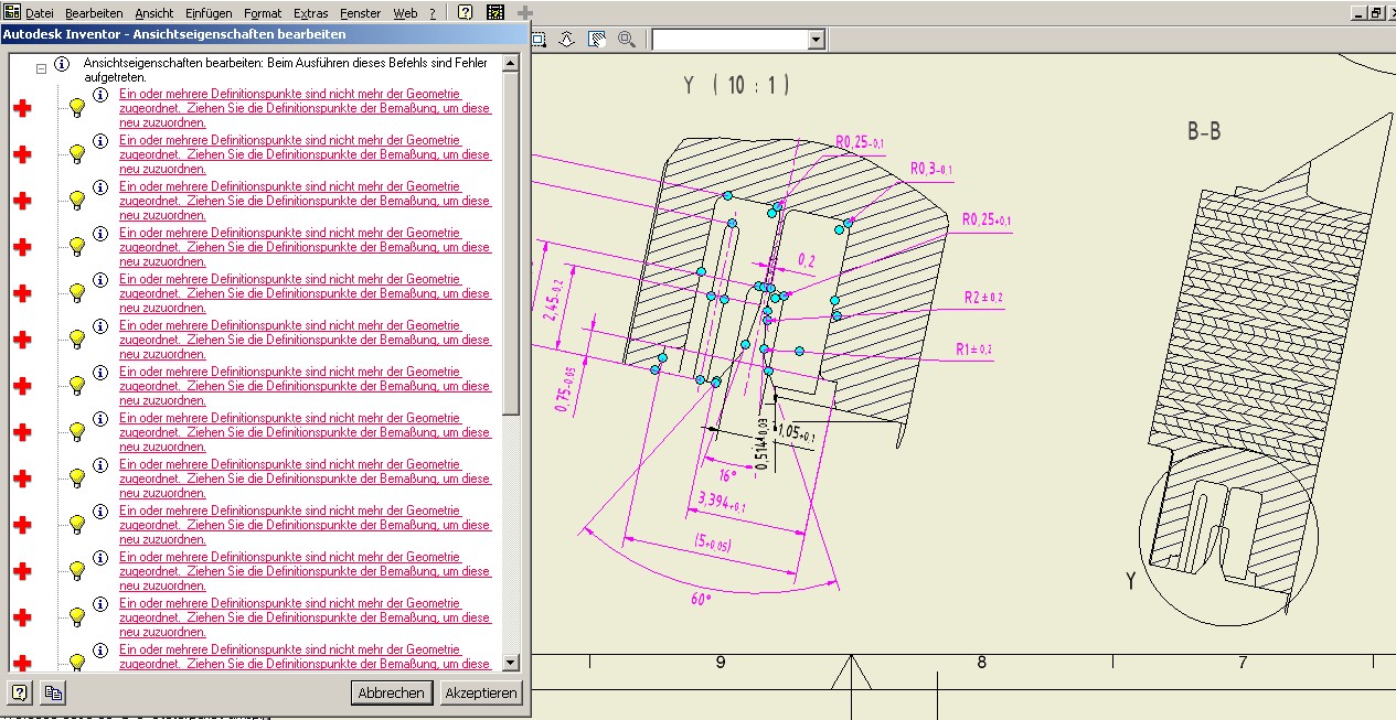 Hallo Uwe, solch einen Fehler hab ich auch beim 6er schon gesehen, habe einmal am Detailkreis gezupft, will sagen diesen vergrößert oder verkleinert und siehe da die Ansicht wurde regeneriert und die Bemaßungen waren wieder vernünftig zugeordnet. Grüße ------------------ Wolfgang Eine Antwort auf diesen Beitrag verfassen (mit Zitat/Zitat des Beitrags) IP |