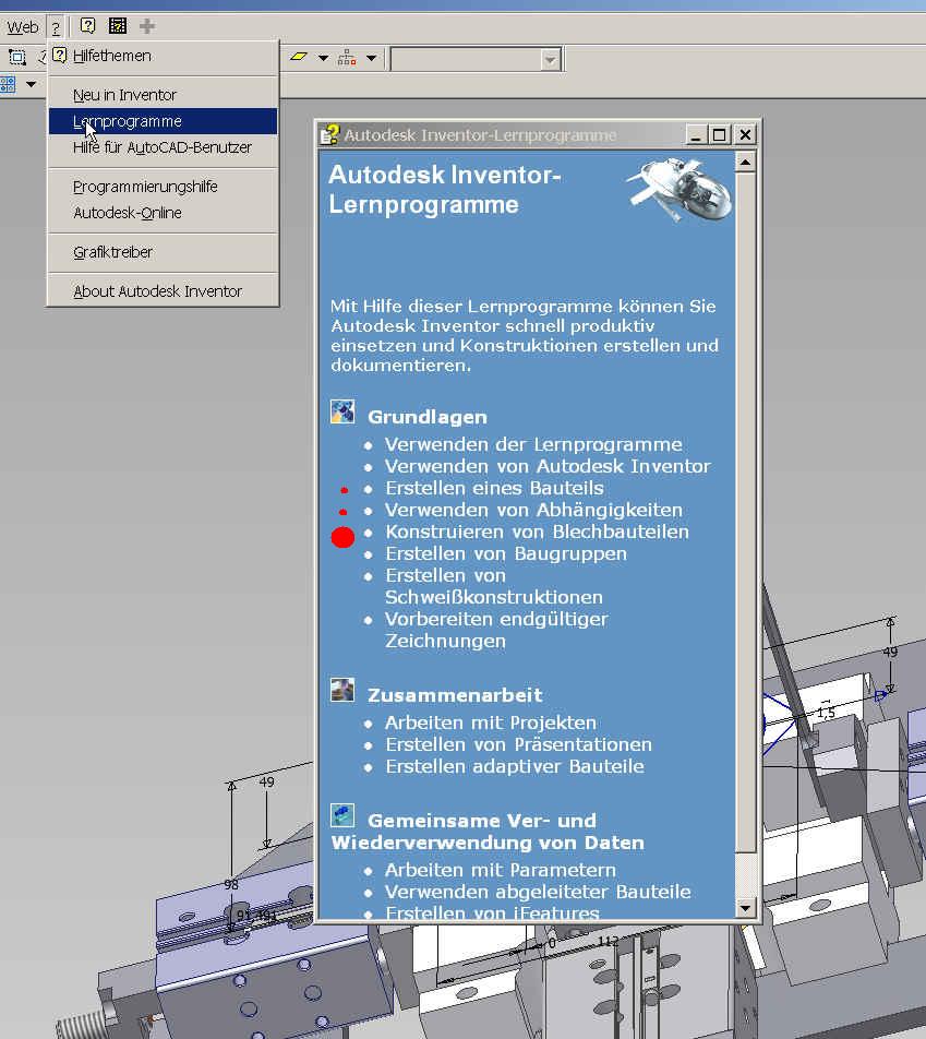 Hallo Kurt, da hakelts scheinbar an mehreren Ecken  Mögliche Abhilfe: einige Händler bieten sogenannte Schnupperkurse an, bei denen ein grober Überblick über die Konstruktion mit Inventor gegeben wird. So richtig in einem Schulungsraum mit eigenem Rechner für jeden Teilnehmer. Kostet nicht die Welt, oder ist sogar umsonst Wende Dich mal an den Händler Deines Vertrauens. Das würde Dir helfen, die Grundfunktionen besser kennen zu lernen und Fehler zu vermeiden. Ansonsten hilft natürlich auch das Forum gerne weiter! ------------------ Gruß aus Leverkusen Micha Knipp Eine Antwort auf diesen Beitrag verfassen (mit Zitat/Zitat des Beitrags) IP |