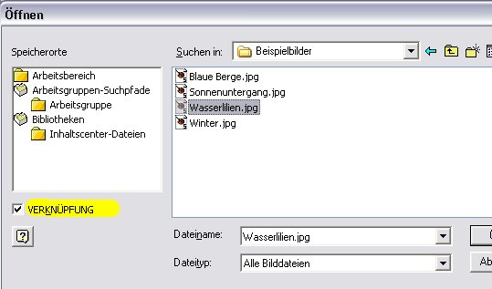Hallo Roland, verknüpfen geht hier: Aber wie ich nunmal bin, erzähl ich auch gleich, was alles nicht so gut geht. Egal ob verknüpft oder nicht, das Bild wird immer in der IPT gespeichert. Beim Verknüpfen überwacht IV nur zusätzlich, ob sich das Original verändert hat. Aus einer IPT bekommt man das Bild nicht wieder raus, auch nicht, wenn man die Skizze löscht, in der das Bild eingefügt wurde. Egal welches Datenformat man nimmt, das Bild wird immer unkomprimiert gespeichert (aus JPG wird sozusagen BMP). Hohe Auflösung und Farbtiefe über 8 bit (256 Farben) macht kein Sinn, wird ohnehin schlechter dargestellt (OpenGL Echtzeit-Grafik). Und 15 MB ist definietiv zuviel für die OpenGL-Grafik ... ------------------ Michael Puschner Scholle und Partner GmbH