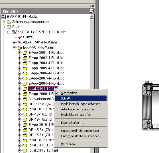 @LK36 Hallo Lutz, ich glaub Ihr redet aneinander vorbei. Konrad redet vom Schnitt in einer Baugruppe (IAM), nicht von einer Schnittansicht in einer IDW-Zeichnungsableitung einer Baugruppe. Zumindest verstehe ich es so. Zitat: Original erstellt von conness: ...Hi, träum ich oder wach ich - wenn ich eine .iam in der Ansicht schneide um in die Baugruppe hineinblicken zu können, werden die Normteile (O-Ringe, Schrauben...etc.) ungeschnitten dargestellt. Das könnte ich in der 2 D - Ableitung noch verstehen, aber nicht wenn ich einen konstruktionsuntertützenden Schnitt durch die Baugruppe lege. ...