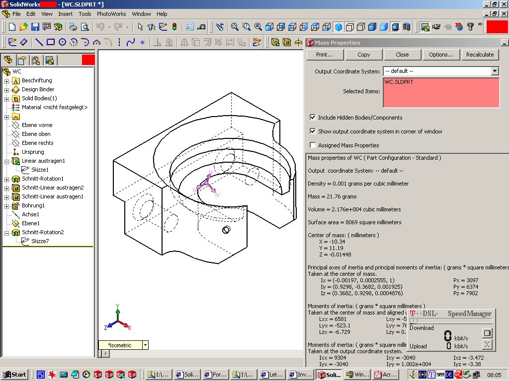 Gut das es die Suchfunktion gibt, damit finde ich immer meine Beiträge wieder ... Hier habe ich mal etwas über die Berechnung der physikalischen Eigenschaften geschrieben. Über die Schaltfläche "Aktualisieren" wird das Ergebnis nicht mit einer definierten Genauigkeit ermittelt, sondern ist abhängig von der Modellkomplexität und der Rechnergeschwindigkeit. Durch Auswählen der Genauigkeitsstufe "sehr hoch" findet die Berechnung mit einer definierten Präzision statt. Meiner Beobachtung nach nutzt das aber nichts, wenn vorher schon durch "Aktualisieren" ein Ergebnis vorliegt, das als "sehr hoch" eingestuft wird. Man kann das gut nachvollziehen, wenn man jeweils das Bauteilende ein Element nach oben und wieder zurück bewegt und die verschiedenen Möglichkeiten in den iProperties ausprobiert. Das Ergebnis ist, bedingt durch die Triangulierung, bei stark gewölbten Flächen auch noch wesentlich von der Lage im Koordinatensystem abhängig. Besonders auffällig war das bei der Feder aus der Aufgabe im Dezember 2004. ------------------ Michael Puschner Autodesk Inventor Certified Expert Scholle und Partner GmbH