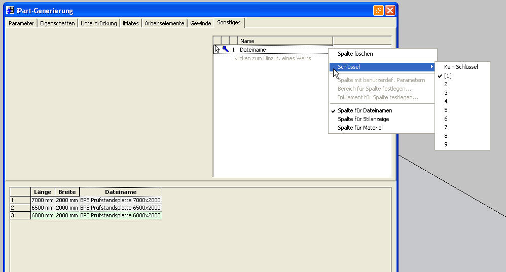 Hallo Jürgen, vielen Dank, dass Du am Sonntag dir die Mühe machst. Ich habe bei der iPart Generierung, den Dateinamen als neue Spalte definiert und Schlüssel 1 dazu vergeben,(habe ich eine älteren Thread gelesen) Der Kinder Dateiname wird auch richtig vergeben, es werden 3 Dateien erzeugt, aber im Zusammenbau wird mir nur ein Teil (Mutter) angezeigt. Muss ich unter "Eigenschaften" eine Bezeichnung vergeben ? Macht natürlich Sinn, nur entdecke ich unter "Übersicht" nur "Kommentar" und unter "Projekt" "Beschreibung", aber kein Stichwort (Bauteil)-Bezeichnung, der Rest wie Bevollmächtigter, Kostenstelle, Konstrukteur, usw. hilft da nicht weiter. Reicht also die Spalte "Dateiname" für die Ausweisung der Kinder (hört sich ja hart an ;-) in der Stückliste nicht aus ? Oder mache ich da grundsätzlich was falsch ? Ich möchte lediglich ein paar Varianten eines Bauteils, das auf dem gleichen Mutterbauteil basiert, in die Baugruppe meines Projektes packen und wie 3 verschieden große Teile sehen, die es physikalisch ja auch sind. In der IDW sind aber nur anstatt 1,2,3 nur 1. Vielleicht kannst Du meinem Verständnis auf die Sprünge helfen. (Übrigens noch gute Besserung für deinen Kollateralschaden, ich hoffe es bleibt nur dabei) Gruß Mic Eine Antwort auf diesen Beitrag verfassen (mit Zitat/Zitat des Beitrags) IP |